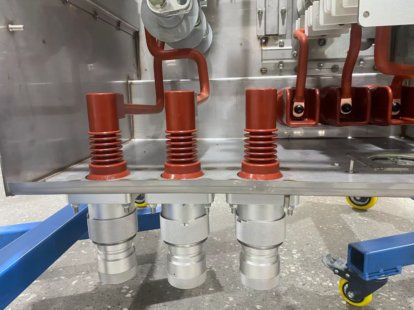为满足户外现场作业应急取电需求,在环网柜的PT单元柜中设置有集成节点开关及取电接口。当取电接口闲置时,需要用集成节点堵头将其进行封堵,以达到全屏蔽、全绝缘、全密封的状态。当需要取电时,只需要把堵头取出,将取电快速插头插入接口旋转卡扣固定即可,取电完毕再将堵头装上以备下次取电使用。本产品适用于15kV PT柜集成节点应急取电接口,匹配标准A型插拔套管充气柜_环网柜_国网标准_10V集成节点开关_应急电源_快速插座_连接器_环保柜应急电源快速插座